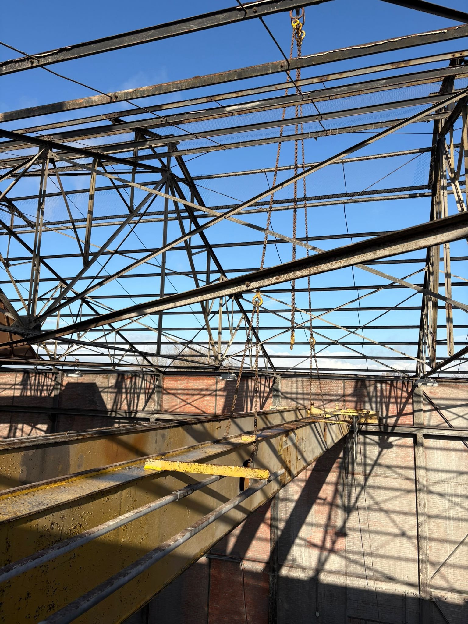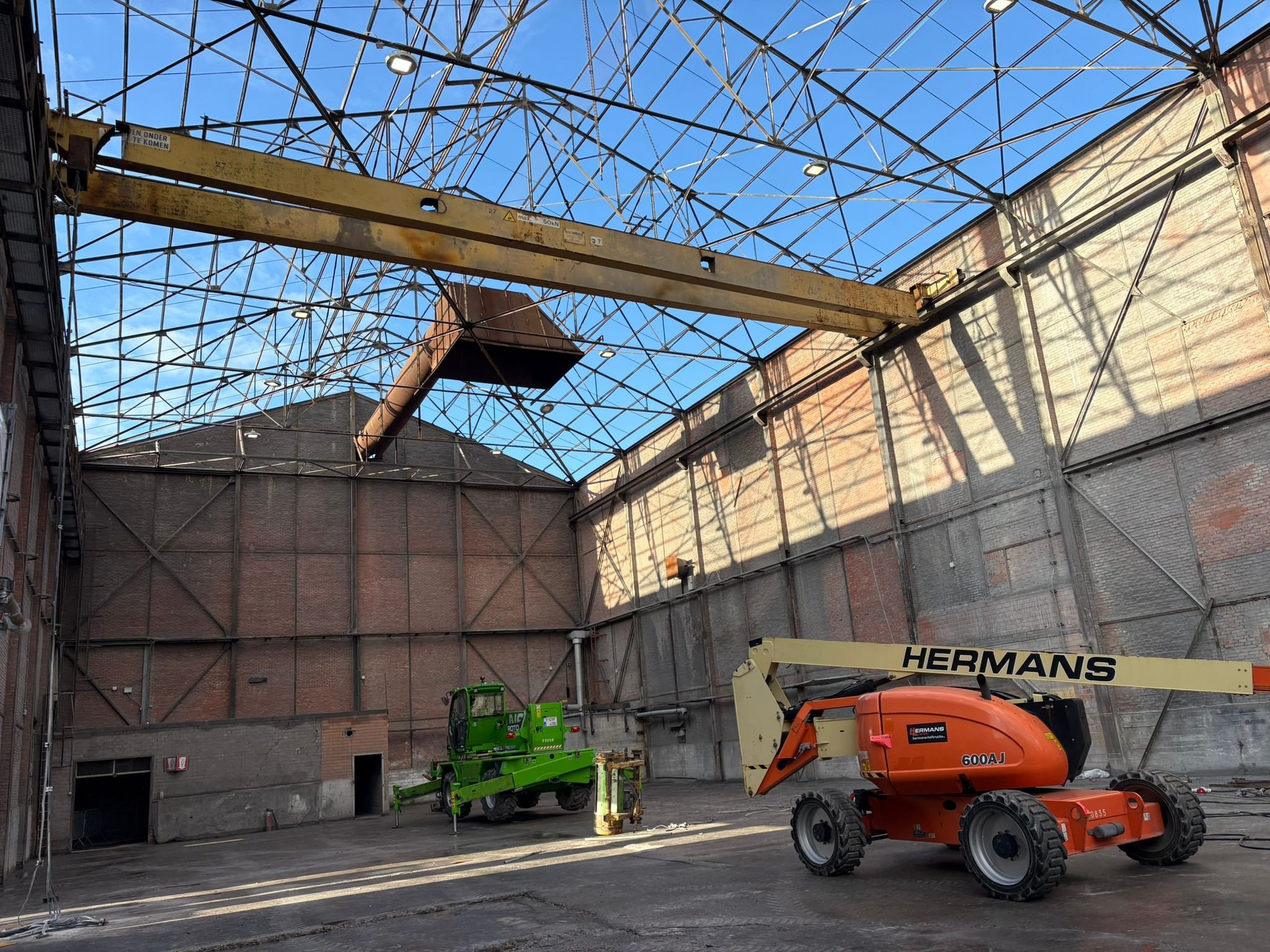 Ook verwijderden we de oude dampkap die destijds boven de smeltoven stond.