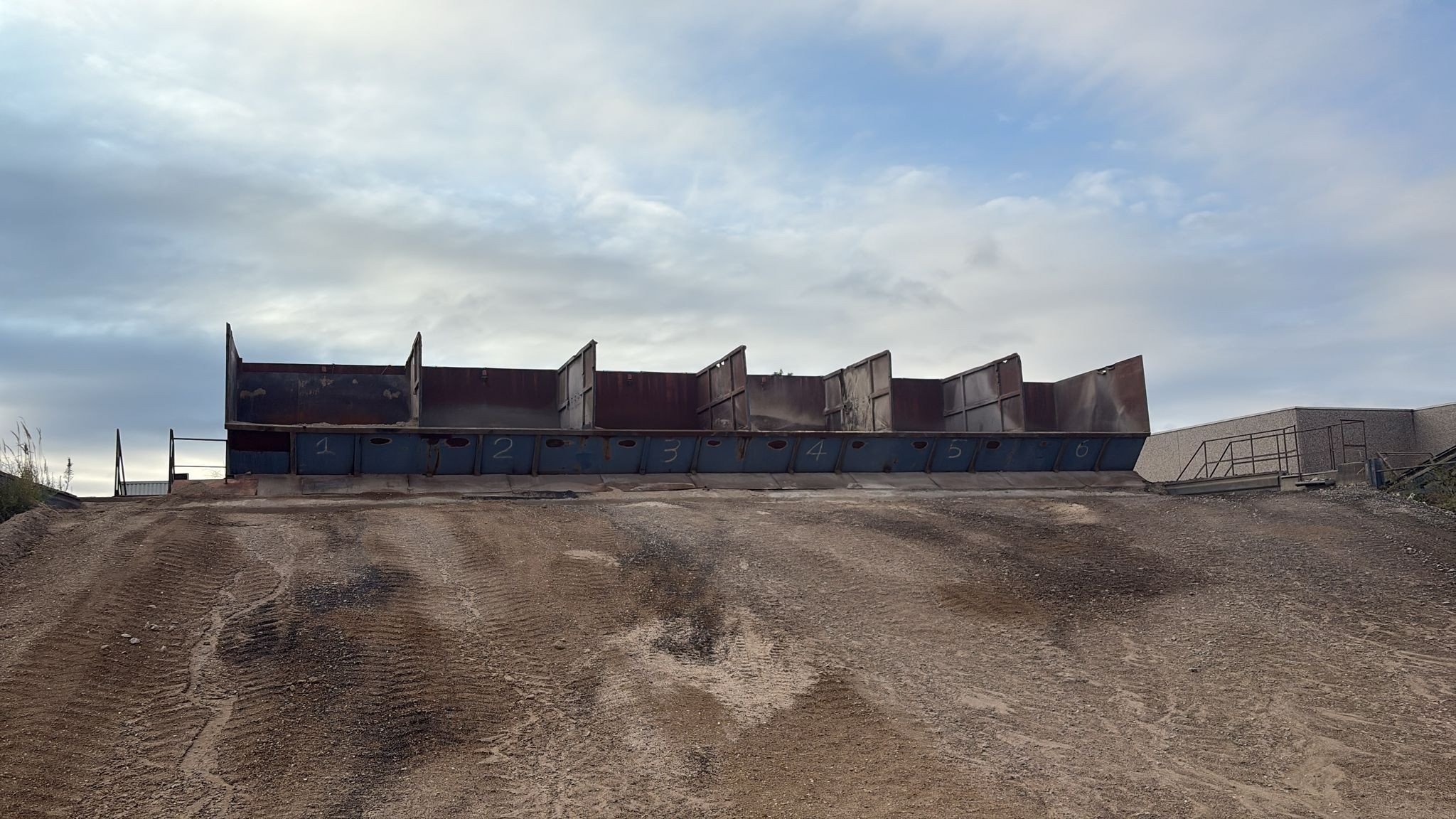 Onze kraan, uitgerust met een schrootschaar, nam het zware werk voor z’n rekening. De bunkers werden zorgvuldig gesloopt en verkleind tot transporteerbaar formaat.
